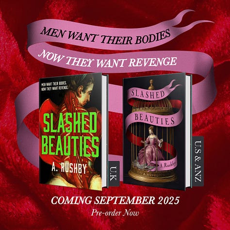 It’s so exciting to see all the Slashed Beauties advanced copies being received and all the book influencers posting and reviewing etc.. Honestly, when I first started writing this tale, I truly believed it might never see the light of day. It really is a bit … odd. I’m thrilled that the world is full of other odd people like me who are keen to read about murderous, revengeful anatomical wax models! I’ve seen the most amazing advanced copy unboxings (HQ, my Australian publisher sent some advanced copies out in decorated birdcages, which really was next level), happy dances from bookstagrammers and reviews that stated the reader learnt “a shit ton of actual historical info from this book”. It doesn’t get better than that! If you haven’t pre-ordered yet, please do. It makes a huge difference!